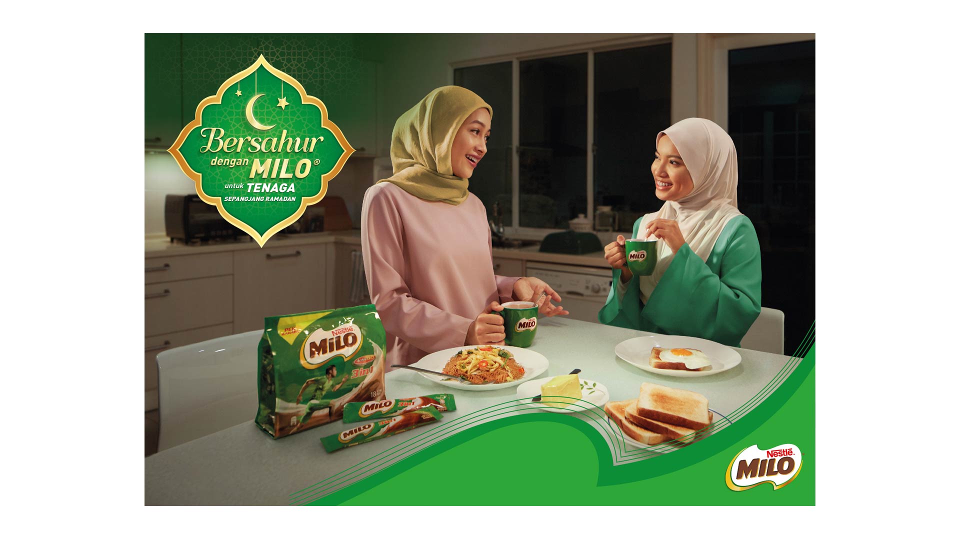 The campaign key visual was developed to promote family consumption during sahur by highlighting the key message of the goodness of MILO giving the energy to go further.